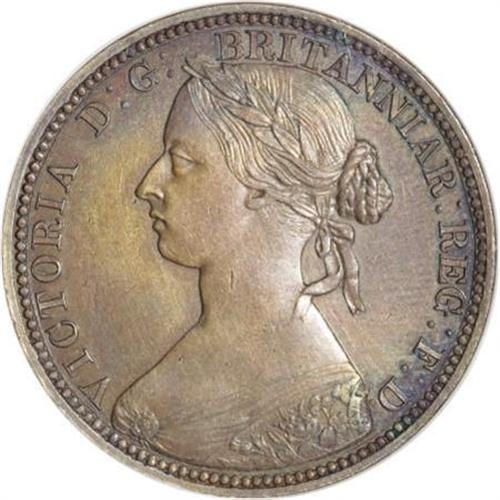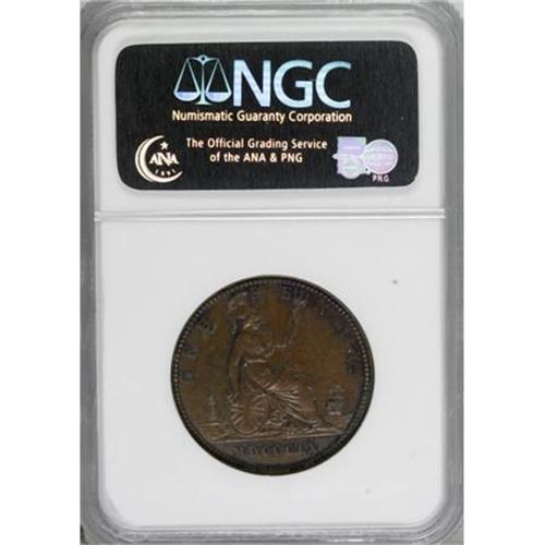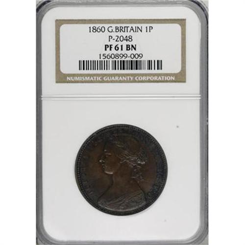 <B>Victoria Bun Head bronze Pattern Penny MDCCCLX</B></I> (1860), Peck-2048, signed L.C.W. below the shield just above the exergue line, PR61 BN NGC, dappled muddy brown surfaces with a huge fingerprint remnant on reverse, but this is a very rare piece ("EXR" says Peck), seldom seen in any condition. An opportunity, for sure, for all penny collectors to acquire something almost nobody else can own.<BR><BR><b>Shipping:</b> Coins & Currency (<a target="_blank" href="http://www.heritageauctions.com/common/shipping.php">view shipping information</a>)