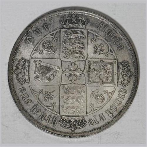 <B>Victoria Gothic style Florin 1873,</B></I> Die #103, S-3893, lightly toned Uncirculated.<BR><BR><b>Shipping:</b> Coins & Currency (<a target="_blank" href="http://www.heritageauctions.com/common/shipping.php">view shipping information</a>)