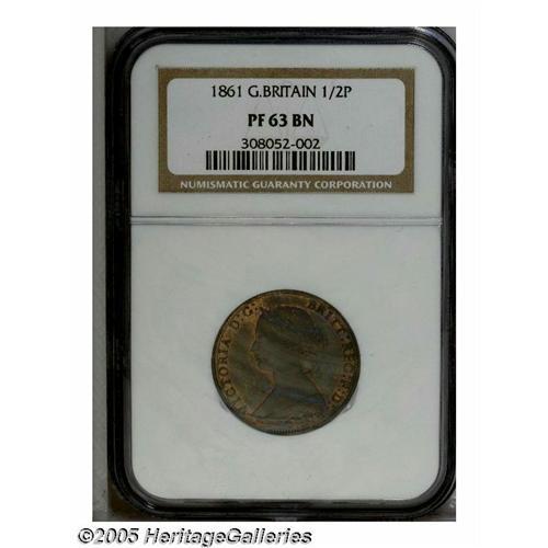 Great Britain. Victoria Halfpenny 1861, 748.2, Proof 63 Brown NGC, Victoria Halfpenny 1861,