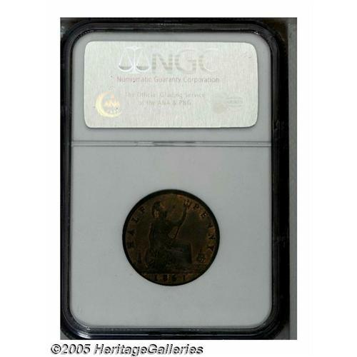 <B>Victoria Halfpenny 1861, </B></I>748.2, Proof 63 Brown NGC, mint luster in the peripheral legends. Very scarce in Proof.