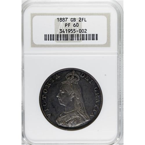 <B>Victoria Jubilee Head Proof Double-Florin 1887,</B></I> S-3922, PR60 NGC, golden gray toning.<BR><BR><b>Shipping:</b> Coins & Currency (<a target="_blank" href="http://www.heritageauctions.com/common/shipping.php">view shipping information</a>)