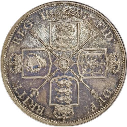 <B>Victoria Jubilee Head Proof Double-Florin 1887,</B></I> S-3923, PR65 NGC, a beautiful Gem Proof coin with delicate, lovely golden blue iridescent toning.<BR><BR><b>Shipping:</b> Coins & Currency (<a target="_blank" href="http://www.heritageauctions.com/common/shipping.php">view shipping information</a>)