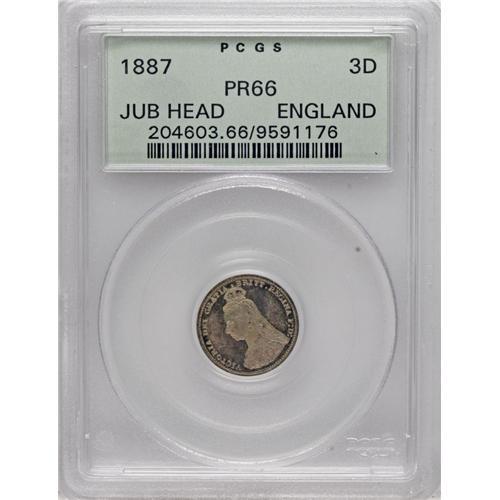 <B>Victoria Jubilee Head Proof Threepence 1887,</B></I> S-3931, PR66 PCGS, an exquisite gem with blue, light gold and faint magenta iridescent toning.<BR><BR><b>Shipping:</b> Coins & Currency (<a target="_blank" href="http://www.heritageauctions.com/common/shipping.php">view shipping information</a>)