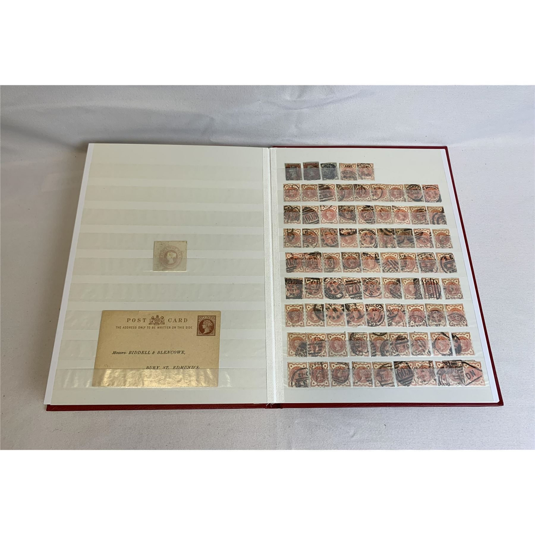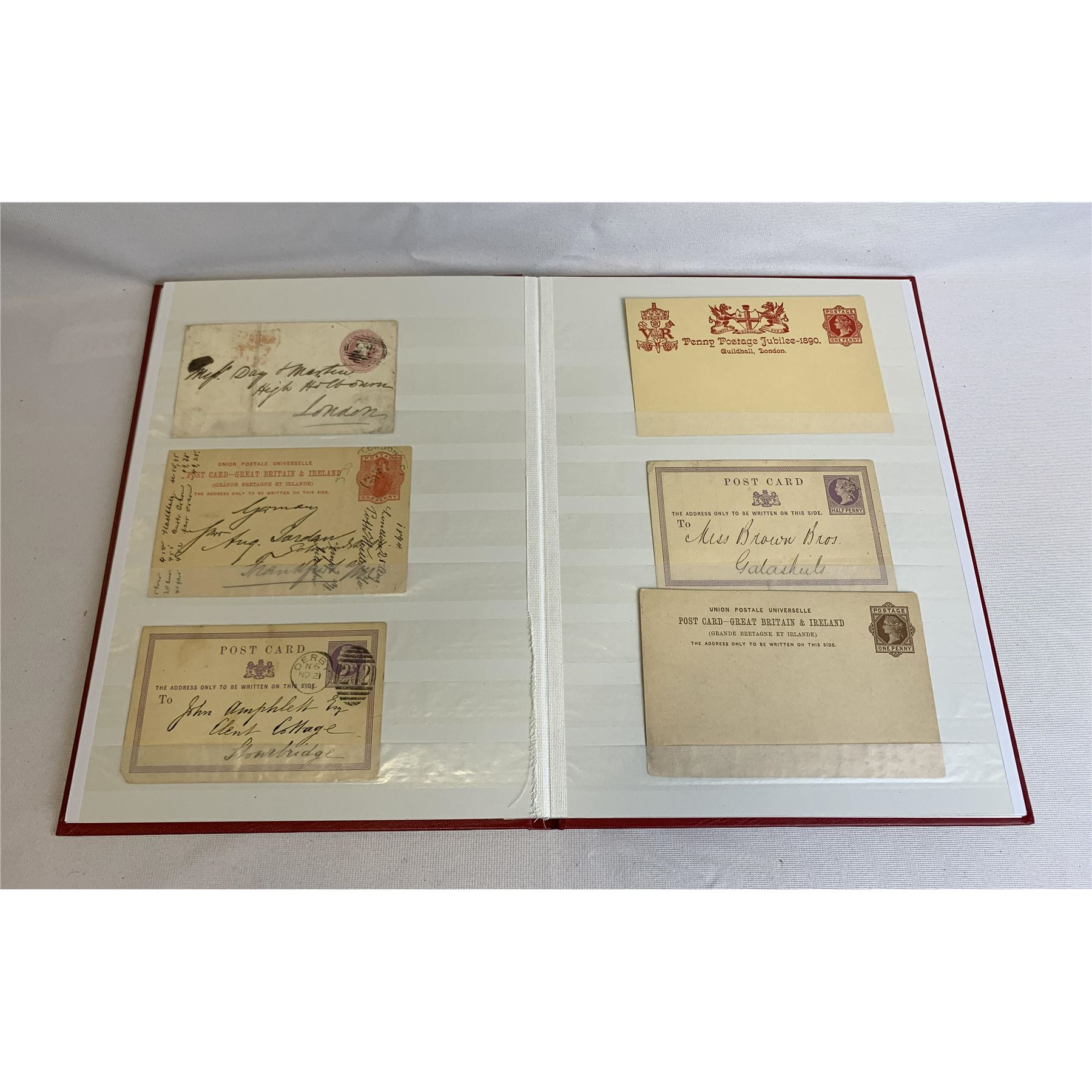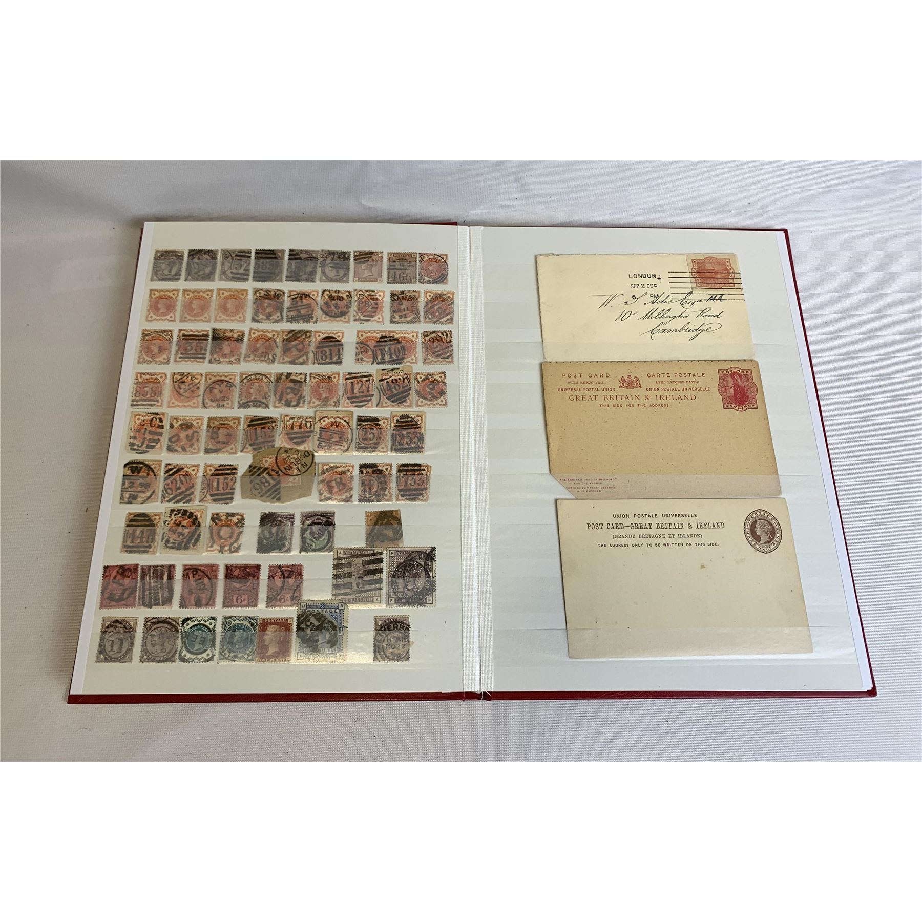 Great Britain Victoria stamp collection. This collection contains over 500 stamps, covers and post cards on eight double-sided pages. Included are mint and cancelled, and many different shade varieties. This collection is housed in a red Leuchtturm stock album. Please see photos.