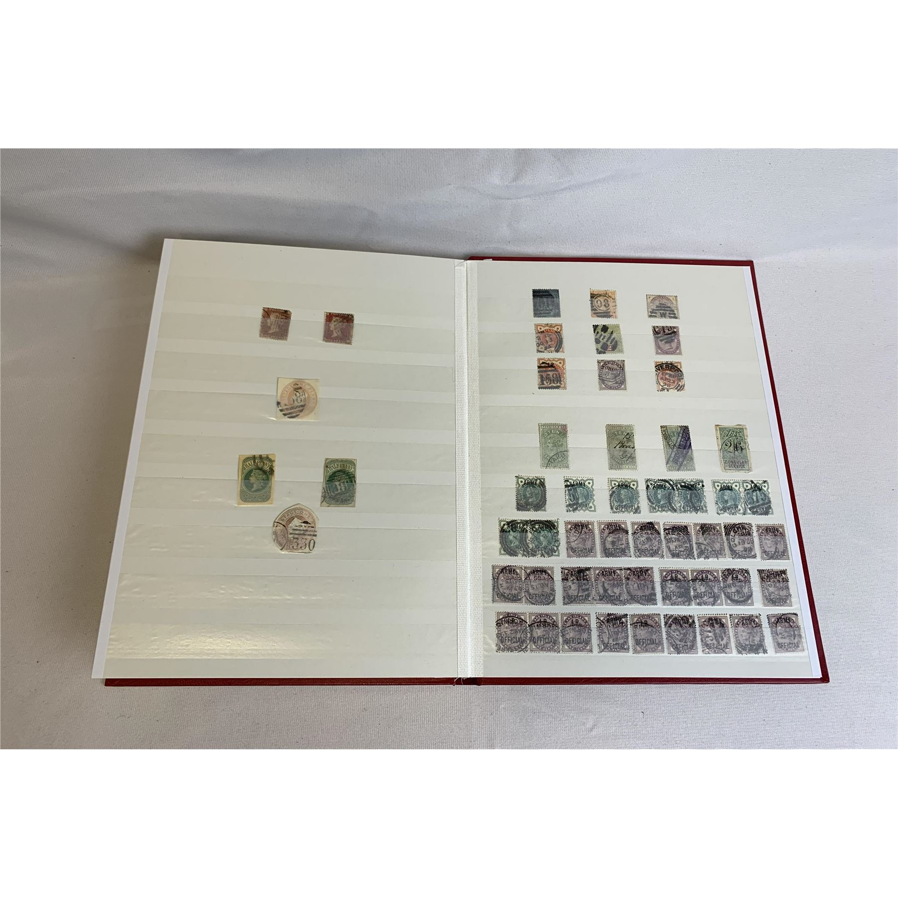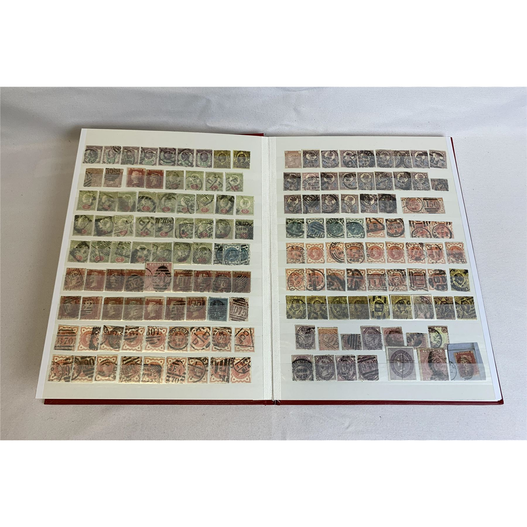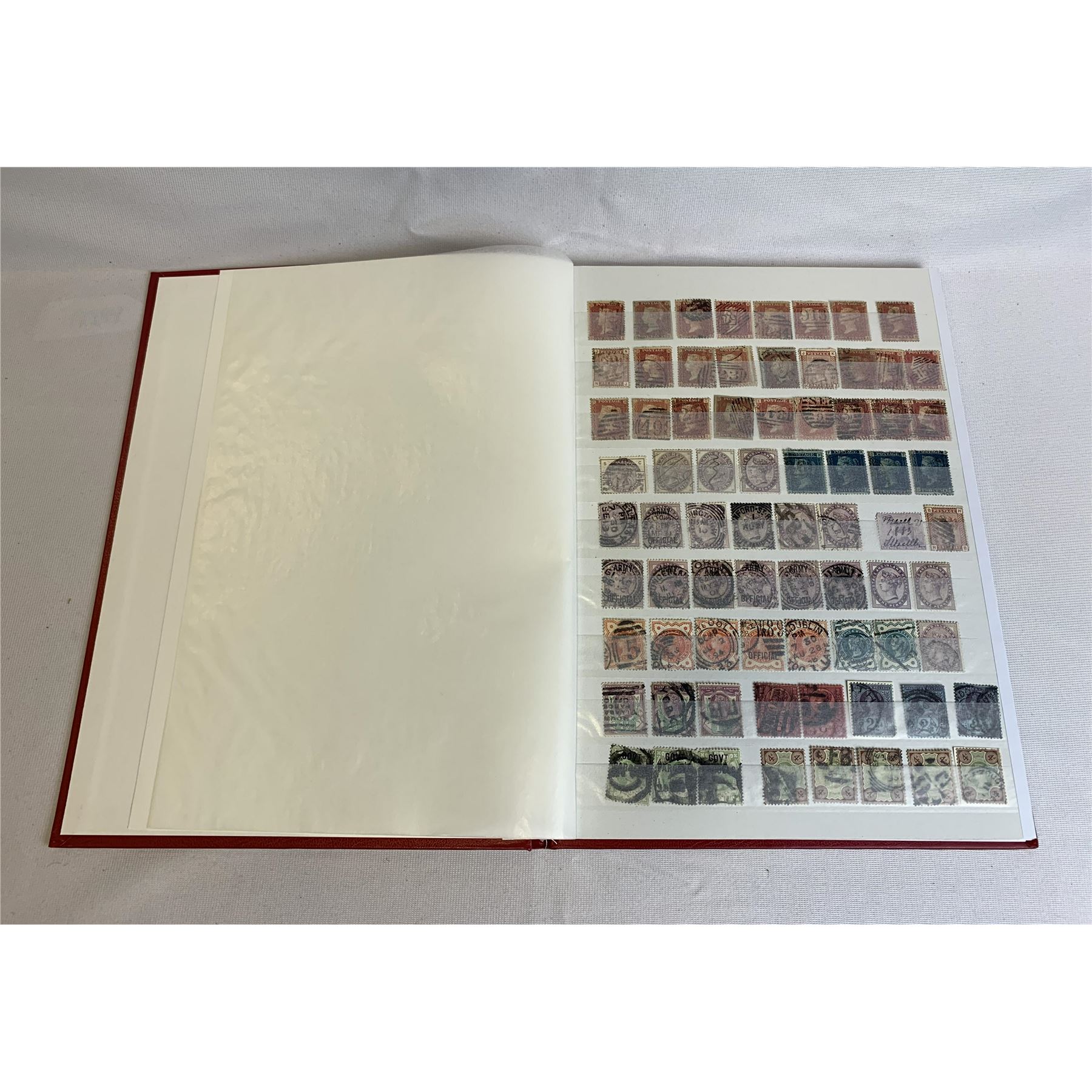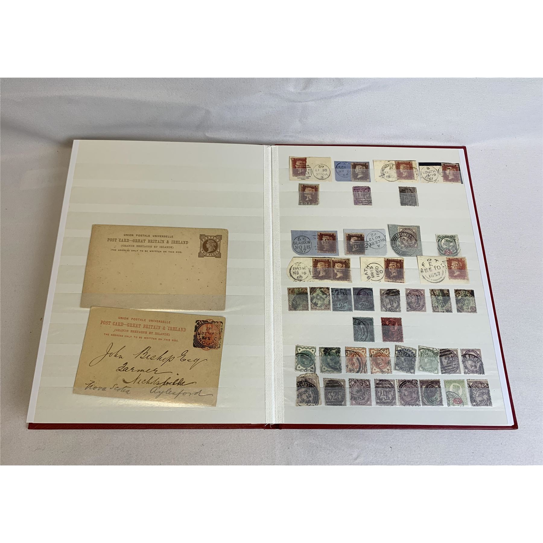Great Britain Victoria stamp collection. This collection contains over 500 stamps, covers and post cards on eight double-sided pages. Included are mint and cancelled, and many different shade varieties. This collection is housed in a red Leuchtturm stock album. Please see photos.