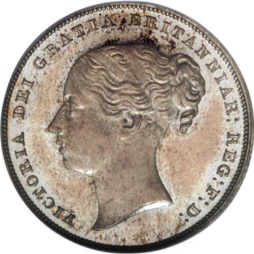 <B>Victoria Young Head Proof Shilling 1842,</B></I> S-3904, Plain Edge, <I>extremely rare</B></I> ("R6" was noted on the Spink ticket when this coin was purchased from them by the consignor, he noted to us), now PR64 PCGS, an exquisite and completely original proof with rich, opalescent silvery surfaces and a frosted cameo portrait. Seems under-graded as there are no hairlines or any detractions of any kind, and this piece is pristine. Quite possibly the finest known Proof of record of this early date. Spink catalogue value is $2,500 (approximately $5,000) but this is the only quality specimen ever seen by this cataloguer. Proofs of Record were created each year from 1800 onward, by law intended as examples to be held in museums as examples of the regal coinage of the era. The few specimens that exist in private hands today typically were duplicates traded by the museums that obtained them at issue. (Grading note: the cataloguer remembers seeing this very coin, in a PR65 PCGS slab, about a decade ago; it was then purchased by Spink, who removed it from the slab, after which the current consignor purchased it from Spink, and recently asked PCGS to grade it once again. If two proofs occur on the PCGS population report, a PR65 and a PR64, they are one and the same coin, this specimen.) An important as well as an elegant rarity! <BR><BR><b>Shipping:</b> Coins & Currency (<a target="_blank" href="http://www.heritageauctions.com/common/shipping.php">view shipping information</a>)