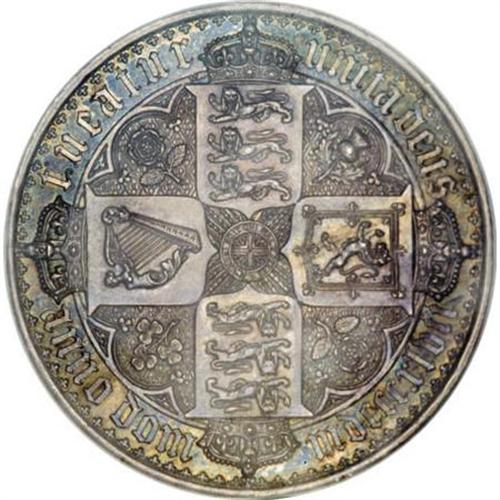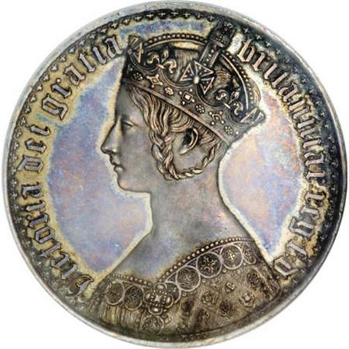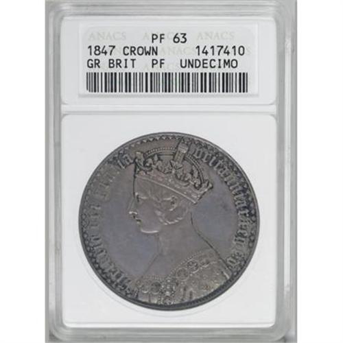 <B>Victoria Gothic Crown 1847,</B></I> S-3883, edge not visible, PR63 ANACS, dark gray toning, decent mirrors, bluish mauve iridescent hues.<BR><BR><b>Shipping:</b> Coins & Currency (<a target="_blank" href="http://www.heritageauctions.com/common/shipping.php">view shipping information</a>)