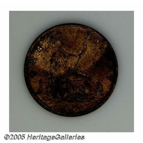 <B>Victoria pair including:</B></I> Halfpenny 1861, UNC with some spotting and nearly full mint luster; and a Penny 1884, spotted UNC with considerable remaining luster. <B>A sold as is no return lot.</B></I>