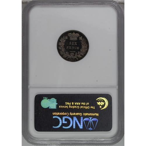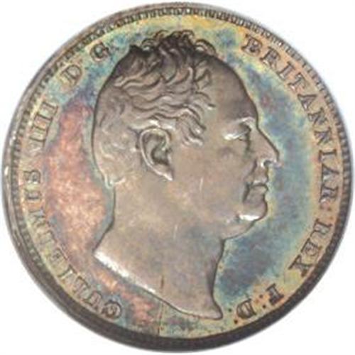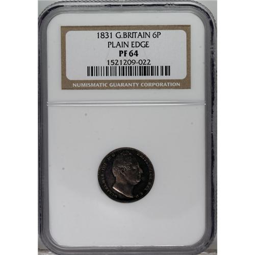 <B>William IV Proof Sixpence 1831,</B></I> S-3836, Plain Edge, PR64 NGC, light nicks on the king's face but still choice, with lovely iridescent blue toning.<BR><BR><b>Shipping:</b> Coins & Currency (<a target="_blank" href="http://www.heritageauctions.com/common/shipping.php">view shipping information</a>)