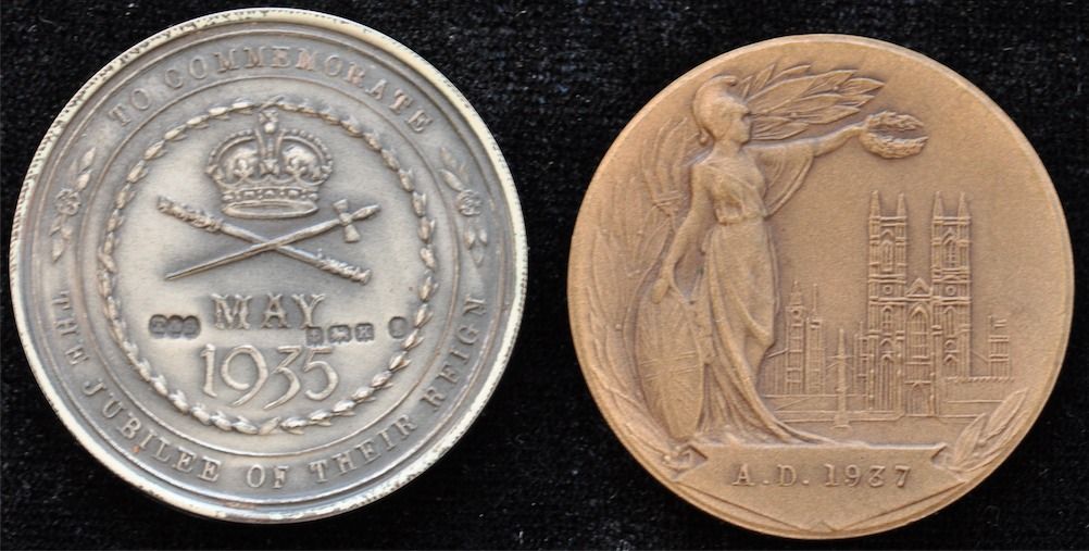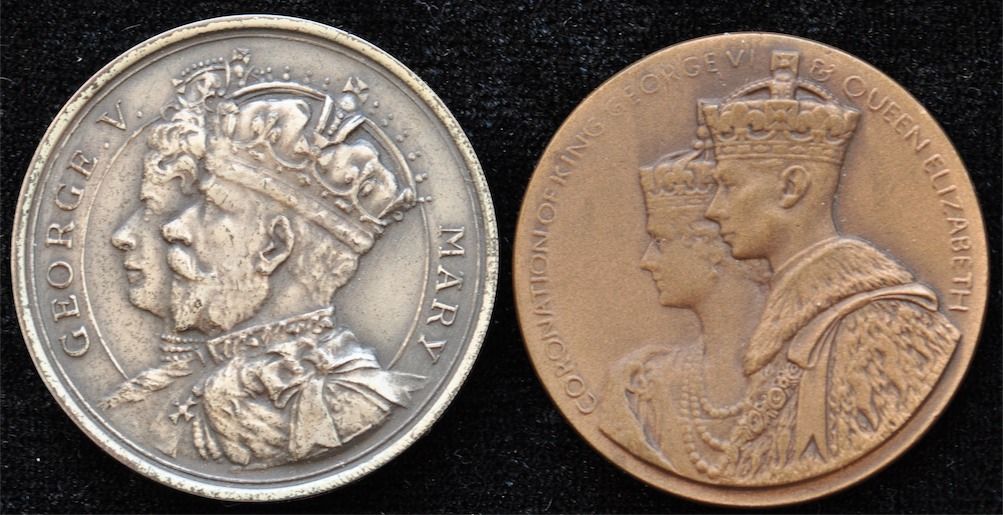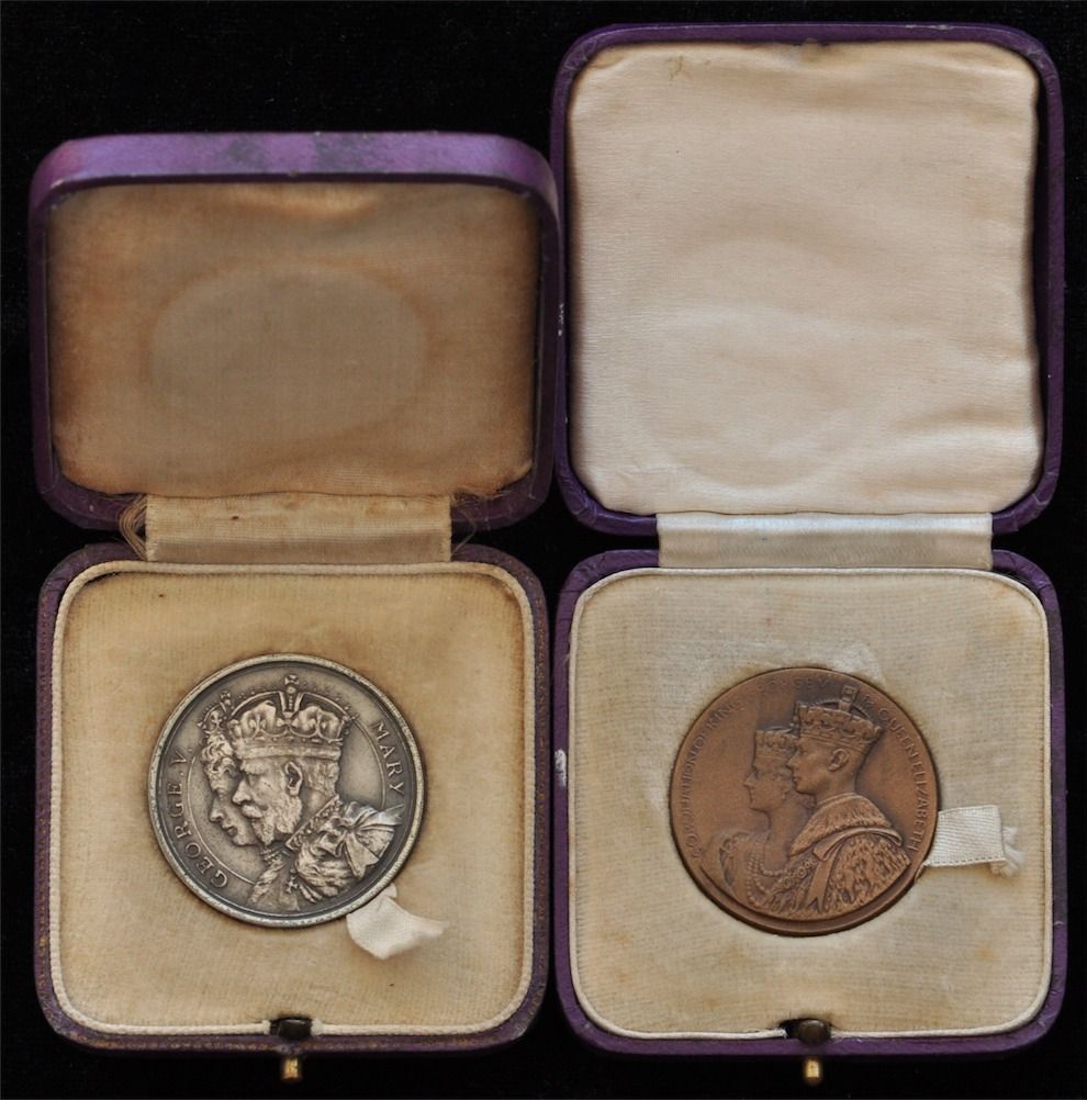 Great Britain - Coronation bronze medal of George VI and Queen Elizabeth in case of issue, 1937; 1935 Jubilee medal of George V and Mary, silver, 14.8 gms in case of issue. 2 Pcs.