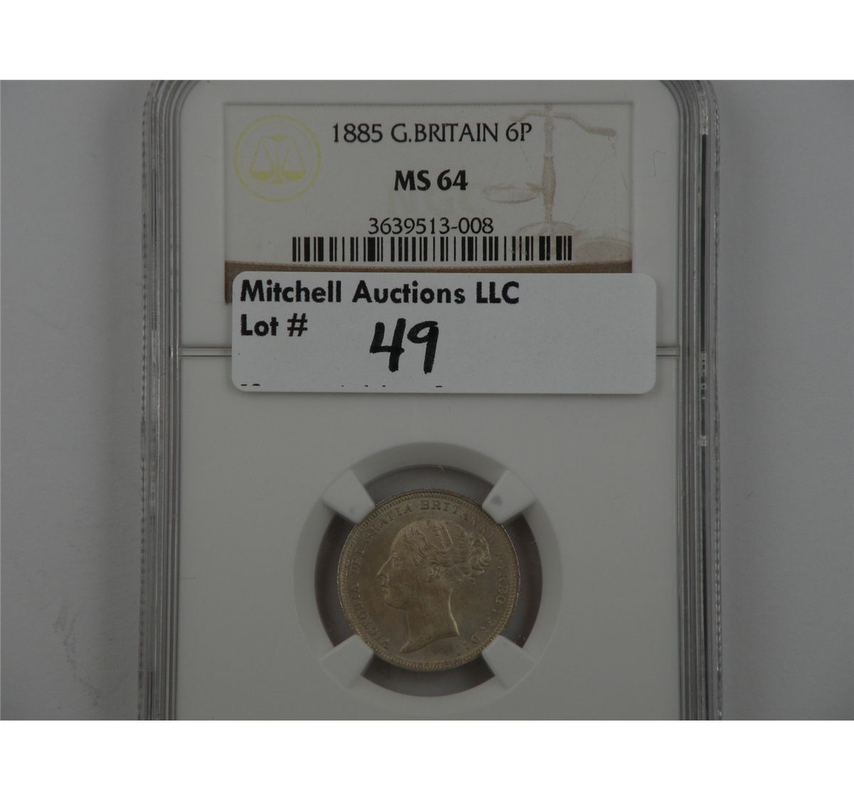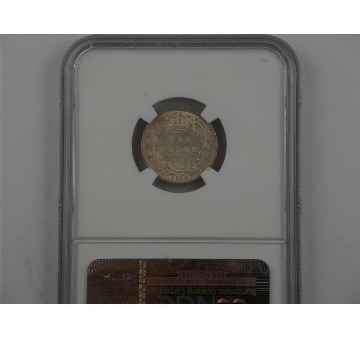 Great Britian. 1885 Sixpence. NGC MS64. Luxuriant satiny lustre beneath a blush of lavender-gold. Quite pleasing for the issue. Est.$140