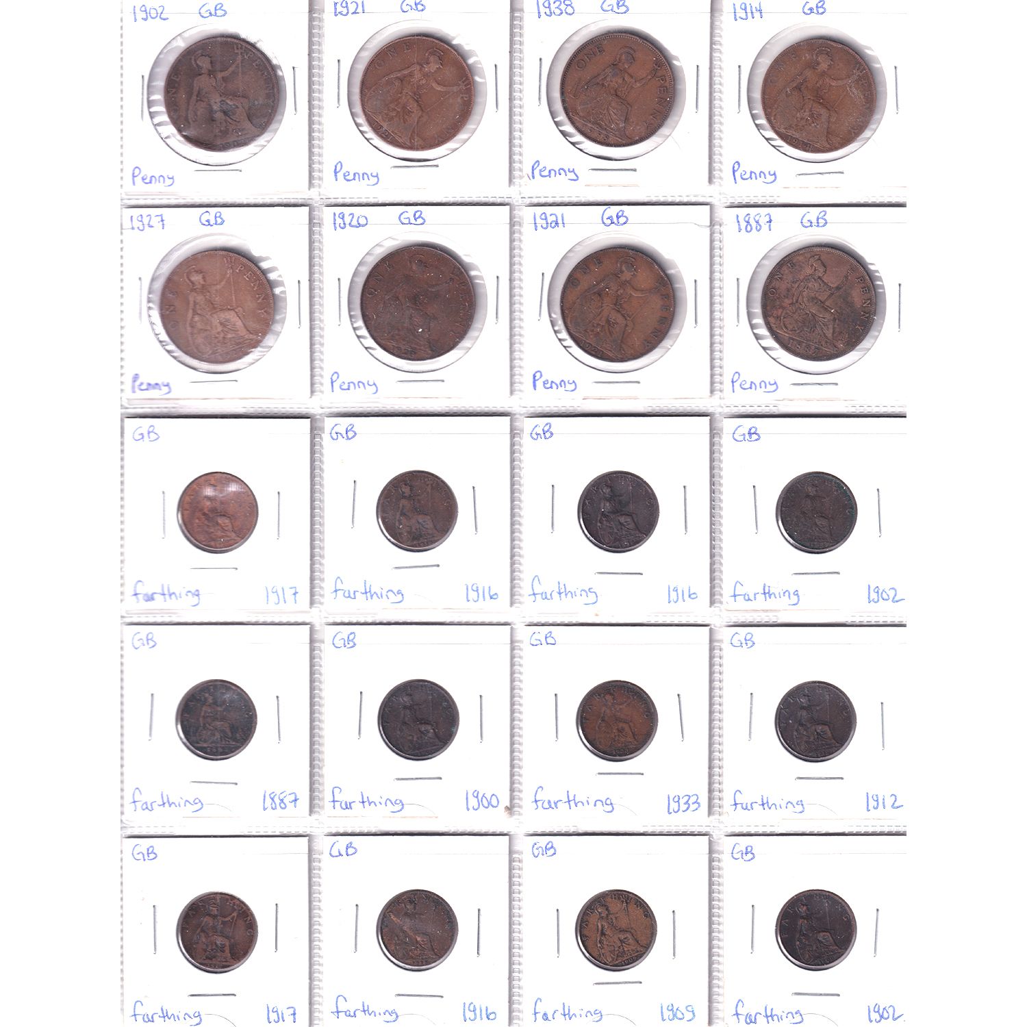 INCLUDES: 1902 Penny, 1916 Farthing, 1921 Penny & Many More!! Sold as is; please view images for details. 40pcs.