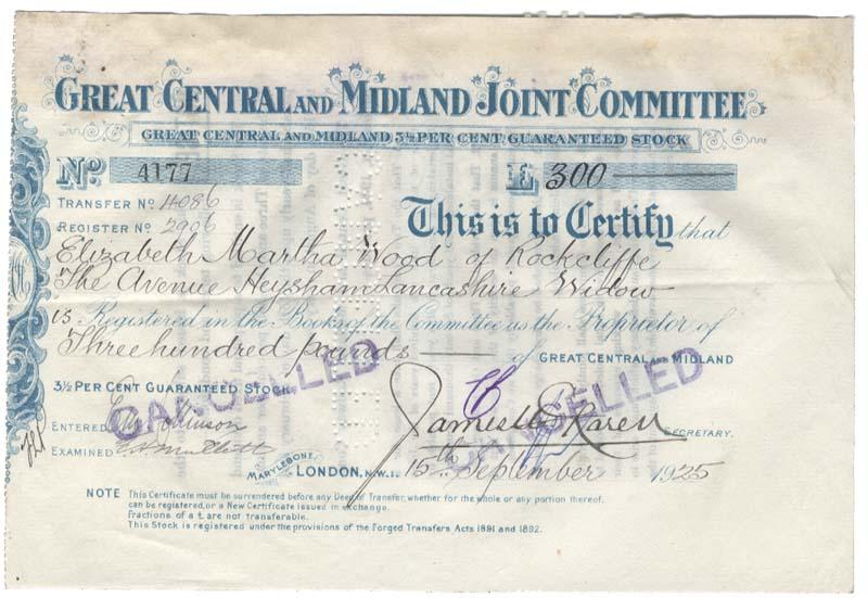 1925, England. 3 1/2% Guaranteed Stock. Blue. Lightly stamp and punch cancelled. Extremely Fine.