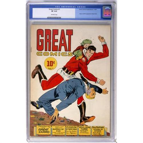 <B>Great Comics #1 (Great Comics Publications, 1941) CGC VF 8.0 Off-white pages.</B></I> Origin and first appearance of Great Zarro. Overstreet 2007 VF 8.0 value = $894. CGC census 6/07: 1 in 8.0, 2 higher.<BR><BR><b>Shipping:</b> Comics - Slabbed (certified) (<a target="_blank" href="http://www.heritageauctions.com/common/shipping.php">view shipping information</a>)