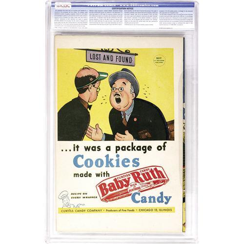 <B>Great Comics #1 Knockout Variant (Knockout, 1945) CGC NM 9.4 Off-white pages.</B></I> This issue exists with four different publisher names; this is the edition with "Knockout" in the indicia. The cover is by L. B. Cole. Overstreet 2006 NM- 9.2 value = $460. CGC census 5/06 (for this variant): 2 in 9.4, none higher. <I>From the collection of Patrick Marchbanks.</B></I> <BR><BR><B>Important notice:</B> Heritage usually auctions material at the rate of 200-250 lots per hour. On some occasions eBay Live bid software or the Internet may not be able to keep up with the pace of the auction. We recommend placing a realistic absentee bid now as insurance to avoid disappointment. Occasionally the auctioneer may eliminate or reject an eBay Live bid, and the auctioneer may also reopen a lot after the close of the eBay live bidding (usually because we missed an audience bid), and may reject your bid even if it shows you as the winning bidder. By bidding via eBay Live, you agree that Heritage may award the lot to another bidder at its sole discretion under the circumstances described above or any other reasonable circumstances. Since eBay bids are not shown to us until we open the lot on the floor, we treat those bids just like floor bids. In most cases the floor responds before the eBay bid is presented to us, due to Internet lag time, so for consistency we have made it a policy that floor bids are always considered first over tie eBay live bids. Also please note that all Heritage lots purchased through eBay Live carry a 22.5% Buyer's Premium. Please make sure you read the Terms and Conditions before you bid. This lot is being auctioned in conjunction with a live floor auction by Heritage Auction Galleries. All final auction and invoice information will be supplied by Heritage Auction Galleries, and all other information should be considered preliminary. Lot:41001 <BR><BR><B>Winning Notification and Billing:</B> After the FINAL session in this auction is complete, Heritage will send e-mail and snail mail invoices. This process normally takes several days. All final auction and invoice information will be supplied by Heritage Auction Galleries, and all other information should be considered preliminary. <BR><BR>This auction will be conducted on a live auction floor and over the Internet through eBay Live. If you choose to place an absentee bid, please take a moment to <font color='#0000ff'><u><a href='http://pages.ebay.com/liveauctions/help/before/laabsentee.html'>learn how eBay Live absentee bidding works</a></u></font><font color='#000000'>
