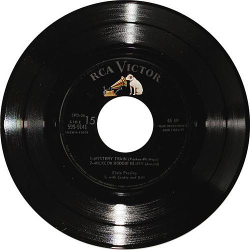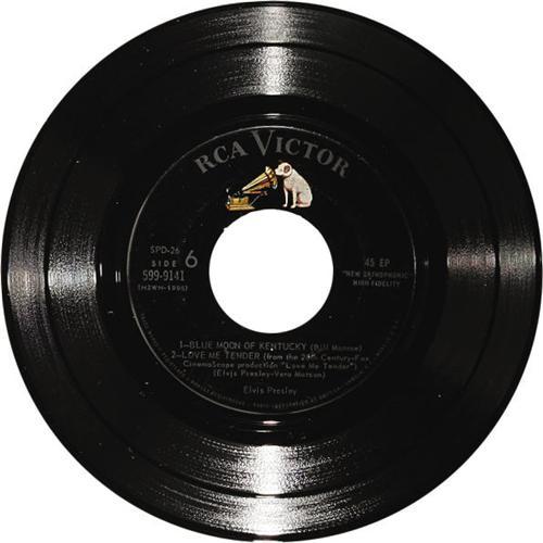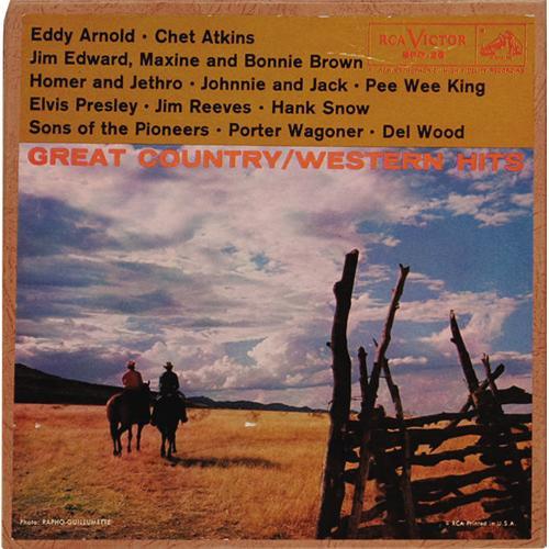 <B>Elvis Related - "Great Country/ Western Hits" EP Box Set (RCA SPD-26, 1956).</B></I> Twelve of RCA's biggest C&W acts of 1956 are represented on 10 discs and 40 songs in this rare box set. Elvis contributes "Blue Moon of Kentucky", "Love Me Tender", "Mystery Train", and "Milkcow Boogie Blues". Four songs each are also contributed by Eddy Arnold, Chet Atkins, Johnnie and Jack, Jim Reeves, Hank Snow, Sons of the Pioneers, and Porter Wagoner, while Jim Edward, Maxine and Bonnie Brown (later known simply as the Browns), Homer and Jethro, Pee Wee King, and Del Wood are each featured on two songs. Quite a collection and quite rare! The box is in EX 7 condition. All the discs are also EX 7, except the Porter Wagoner disc (VG 5) and the Hank Snow disc (VG-EX 6).<BR><BR><b>Shipping:</b> Recordings (<a target="_blank" href="http://www.heritageauctions.com/common/shipping.php">view shipping information</a>)