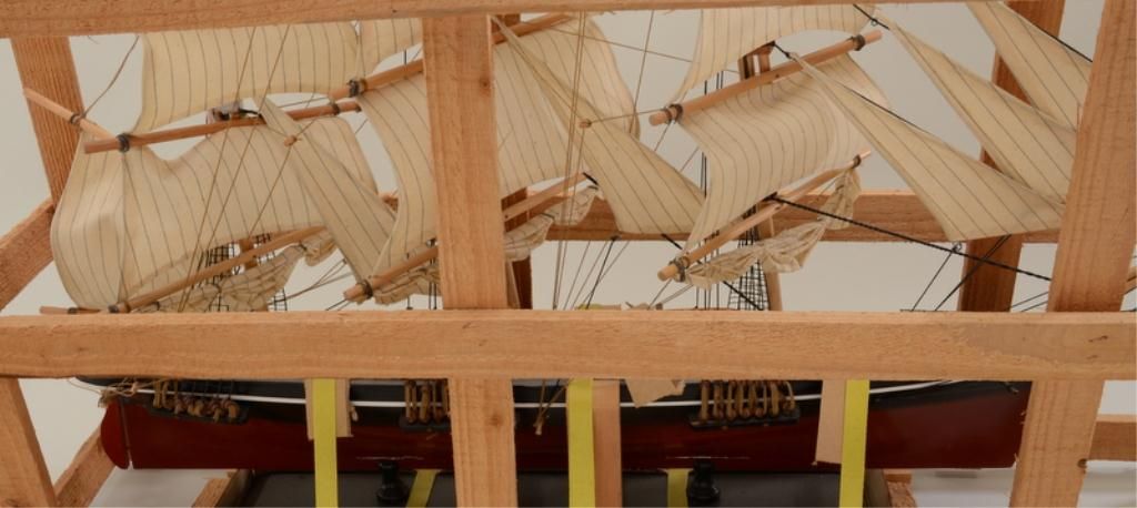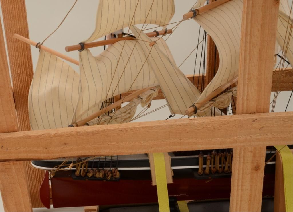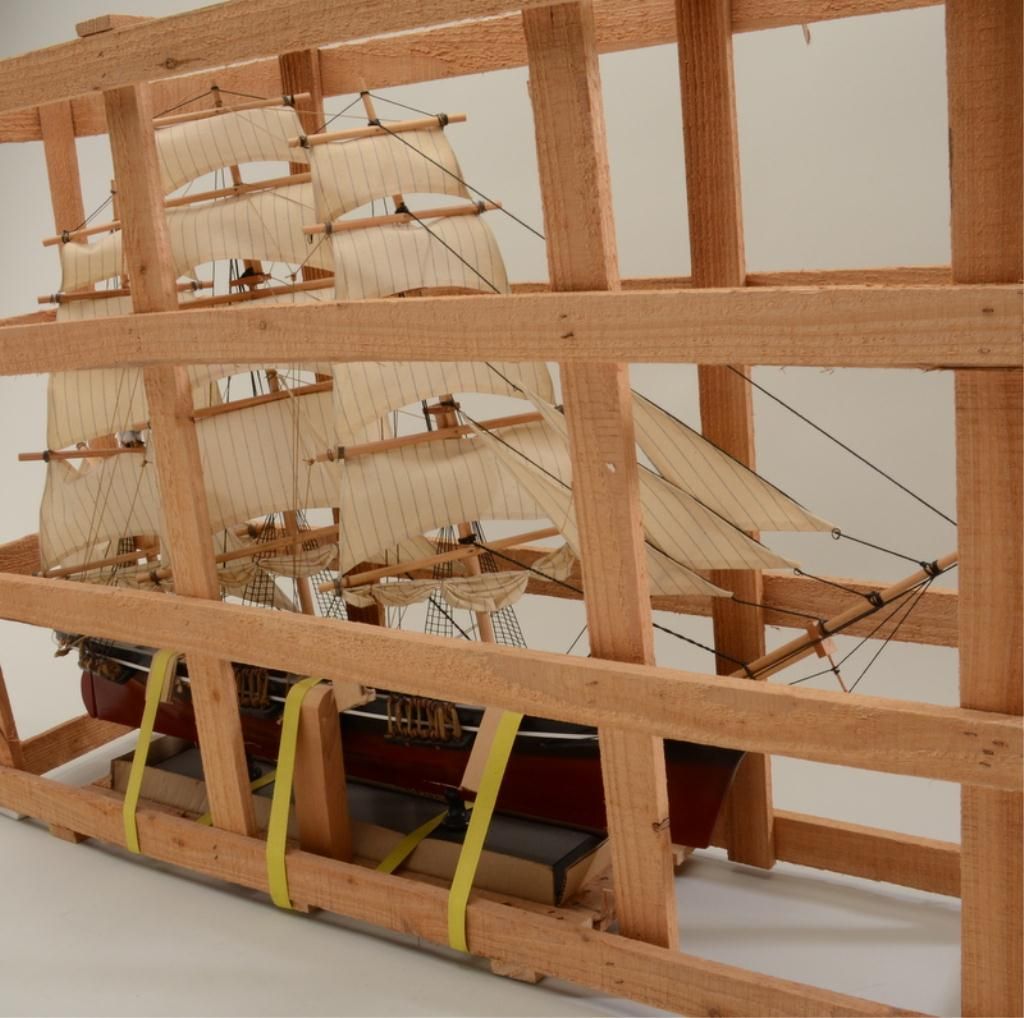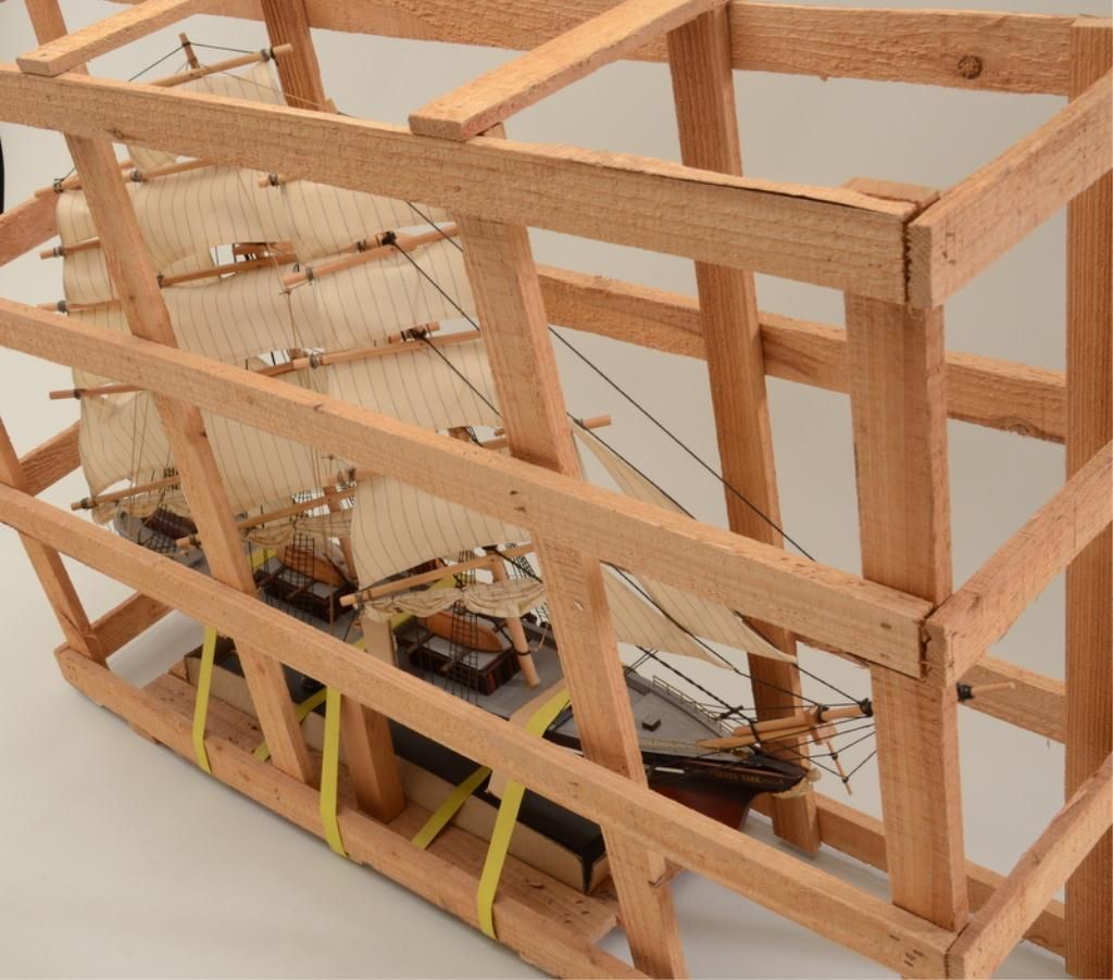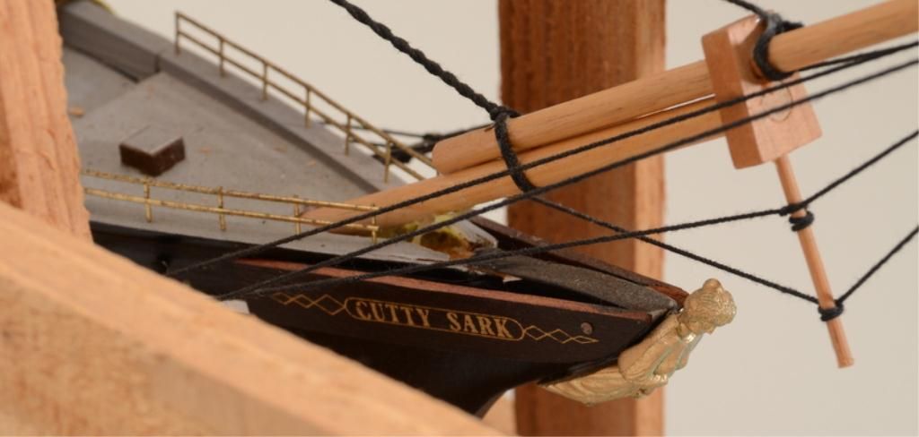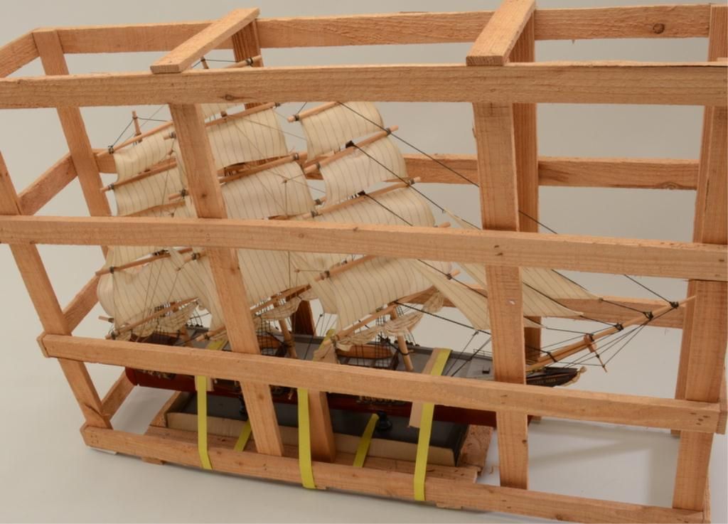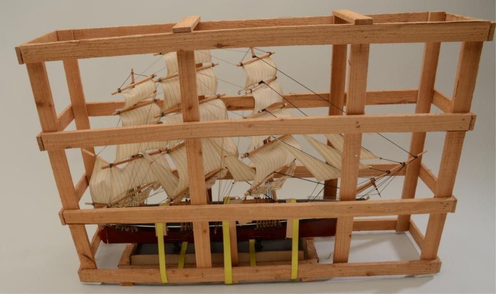 Great Cutty Sark advertiser of their famous signature three-mast sailing ship, approx. 24” high, 36” long and 6” wide on wooden stand and still in its shipping wood framework; overall fine condition; would make a great decorator for the commercial or home bar. Est.: $150-$300.