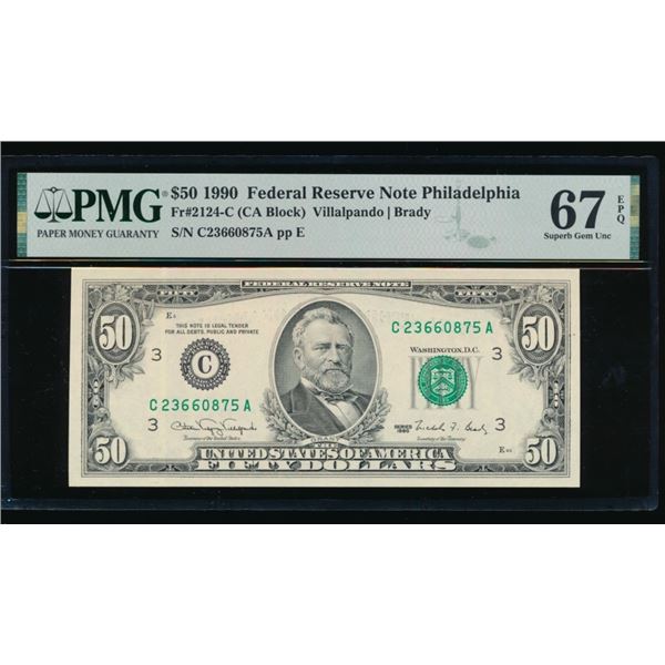 1990 $50 Philadelphia FRN PMG 67EPQ