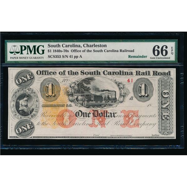 1840's-70's $1 Charleston SC Obsolete PMG 66EPQ