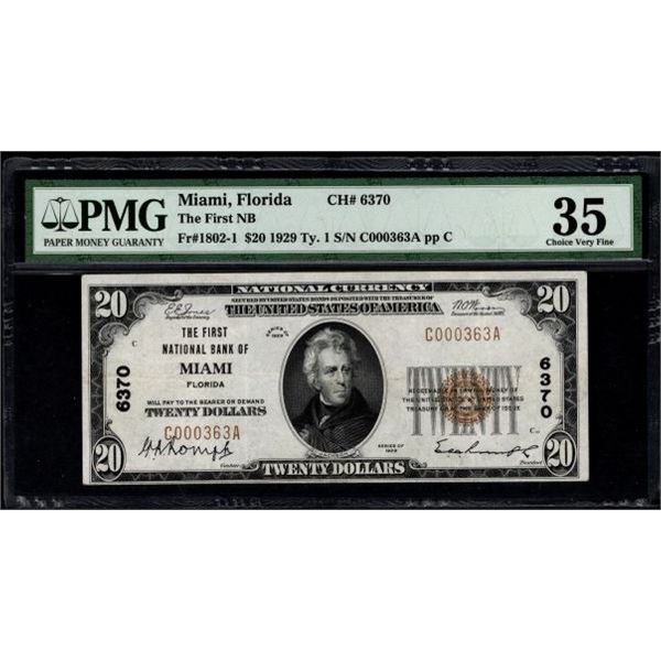 One 1929 $20 Miami FL National Bank Note PMG 35.