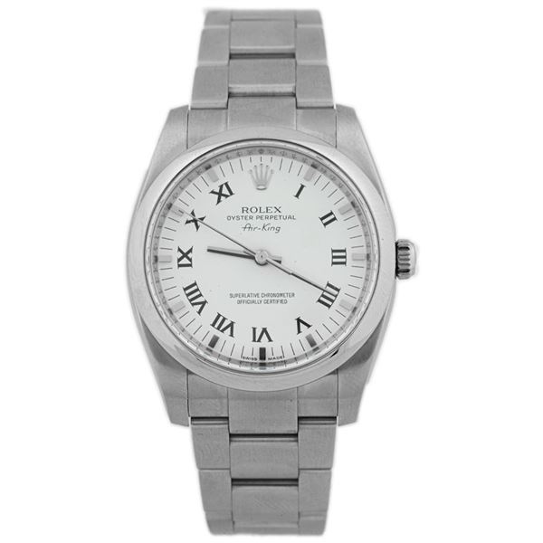 Model: Air-King. Reference #: 114200. Case: Stainless Steel. Case Size: 34mm. Bracelet: Oyster Bracelet. Dial: White Dial w/