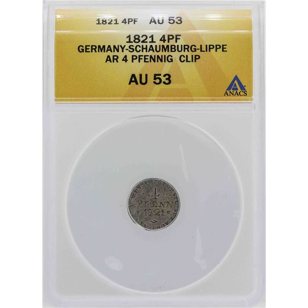 One 1821 Germany-Schaumburg-Lippe 4 Pfennig Coin ANACS AU53.