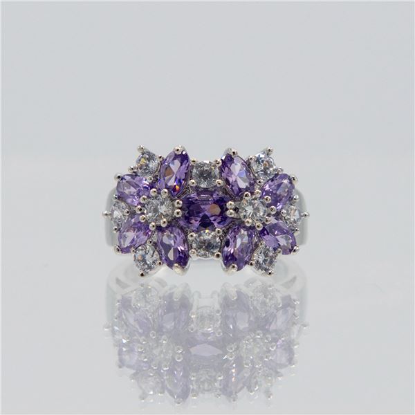 Beautiful 11.5 Ct. Lab Amethyst and Diamond Ring. These lab created gemstones are near flawless and burst out with a dazzling array of colors. Mounted