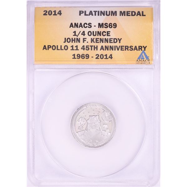 2014 Proof 1/4 oz Platinum JFK Apollo 11 Anniversary Medal ANACS MS69