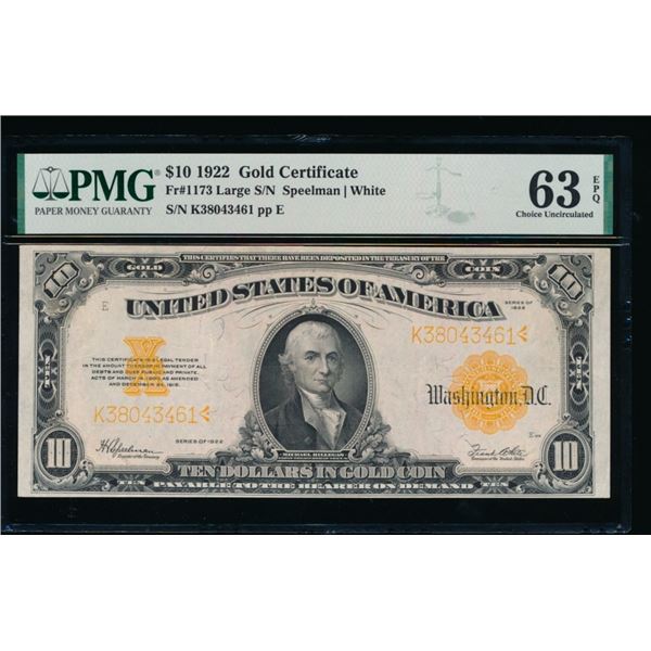 One 1922 $10 Gold Certificate PMG 63EPQ.
