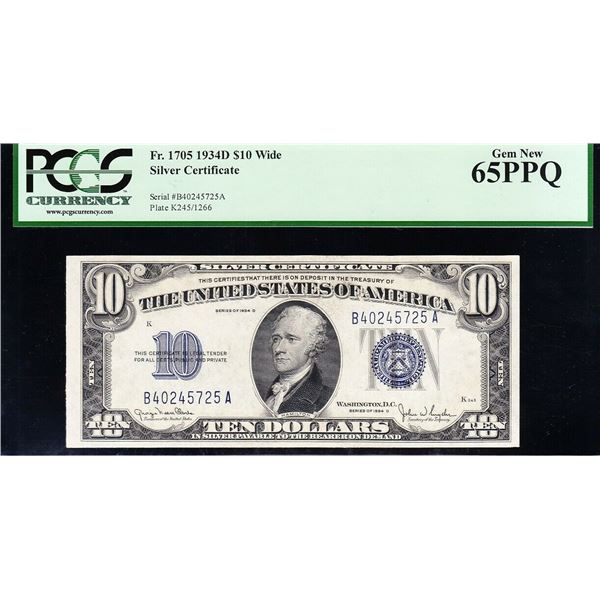 1934D $10 Wide Silver Certificate PCGS 65PPQ