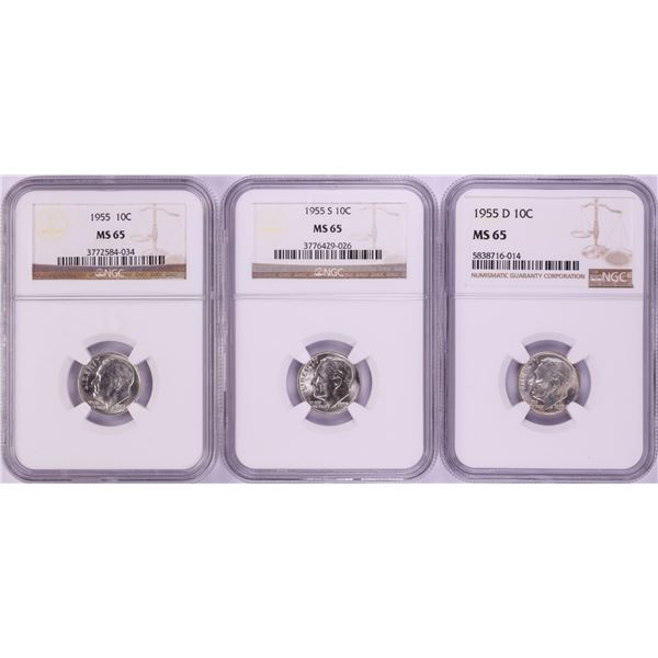 Lot of 1955-P/D/S Roosevelt Dime Coins NGC MS65458 - Lot of 1955-P/D/S Roosevelt Dime Coins NGC MS65
