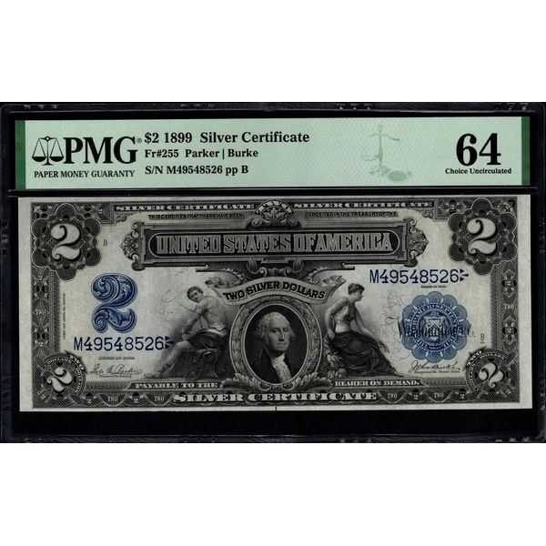One 1899 $2 Mini Porthole Silver Cert PMG 64.