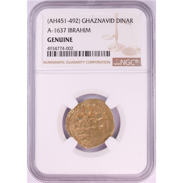 One AH451-492 Ghaznavid Dinar A-1637 Ibrahim Gold Coin NGC Genuine.