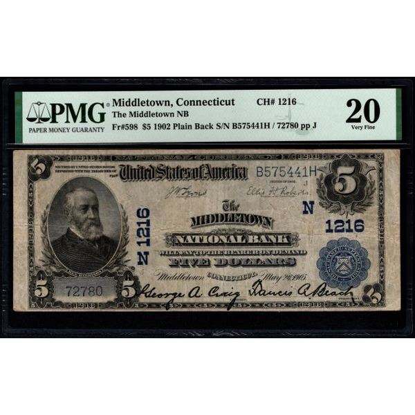 1902 $5 Middletown CT National PMG 20471 - 1902 $5 Middletown CT National PMG 20