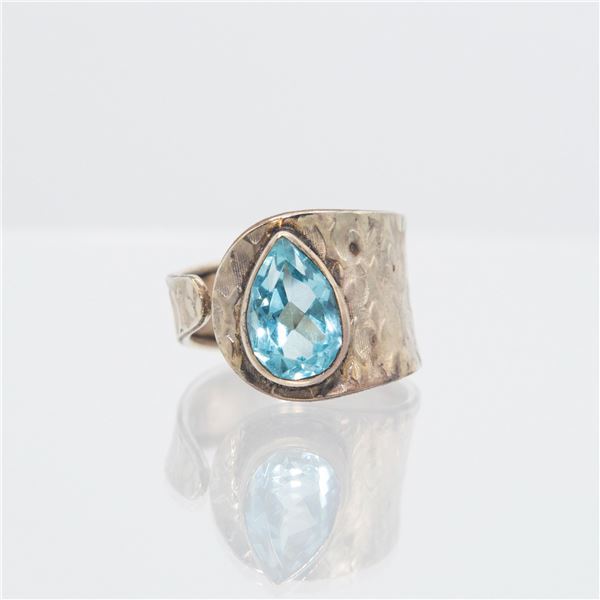 Lovely 4.5 Ct Swiss Topaz Ring.VVS1 eye clean pear cut mounted in solid stamped .925 sterling silver. Size 9.Approx total gram wt is 4.4 tg.