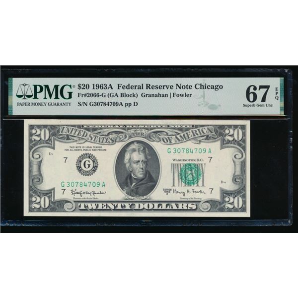 1963A $20 Chicago FRN PMG 67EPQ481 - 1963A $20 Chicago FRN PMG 67EPQ