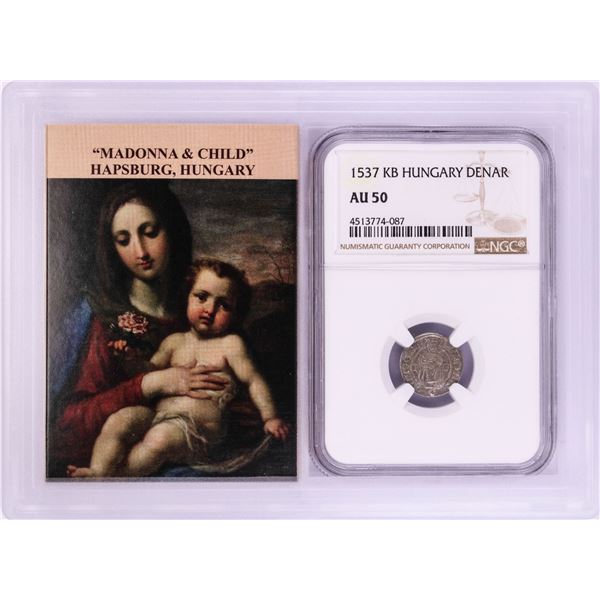 1537 KB Hungary Denar 'Madonna and Child' Coin NGC AU50 w/ Story Box