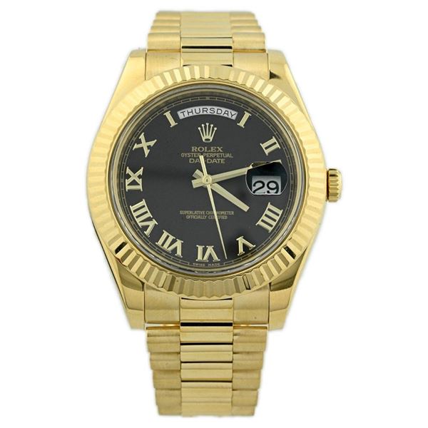 Model: Day-Date II. Reference #: 218238. Case: 18K Yellow Gold . Case Size: 41mm. Bracelet: Gold Presidents Br