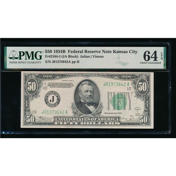 One 1934B $50 Kansas City FRN PMG 64EPQ.