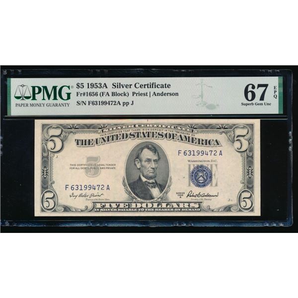 One 1953A $5 Silver Certificate PMG 67EPQ.