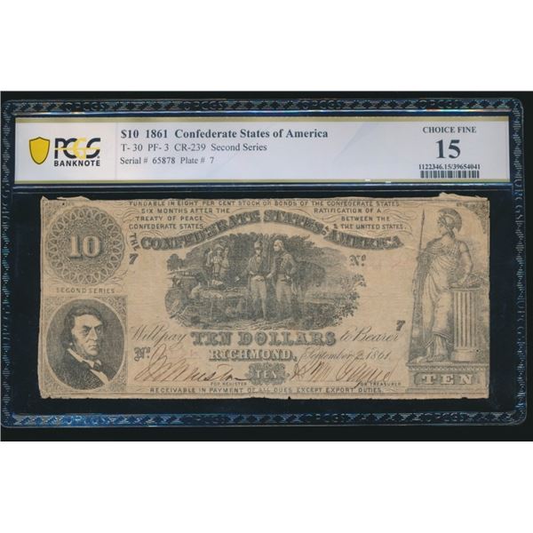 One 1861 $10 Confederate States of America T-30 PCGS 15.