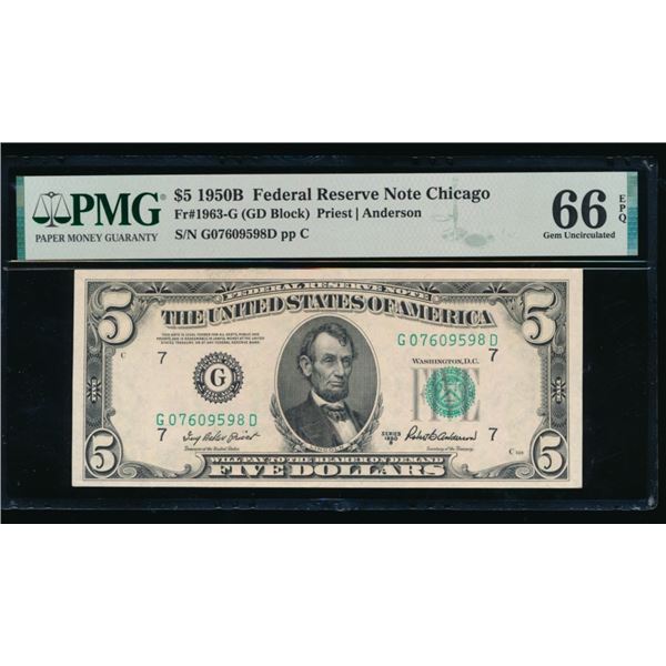 One 1950B $5 Chicago FRN PMG 66EPQ.