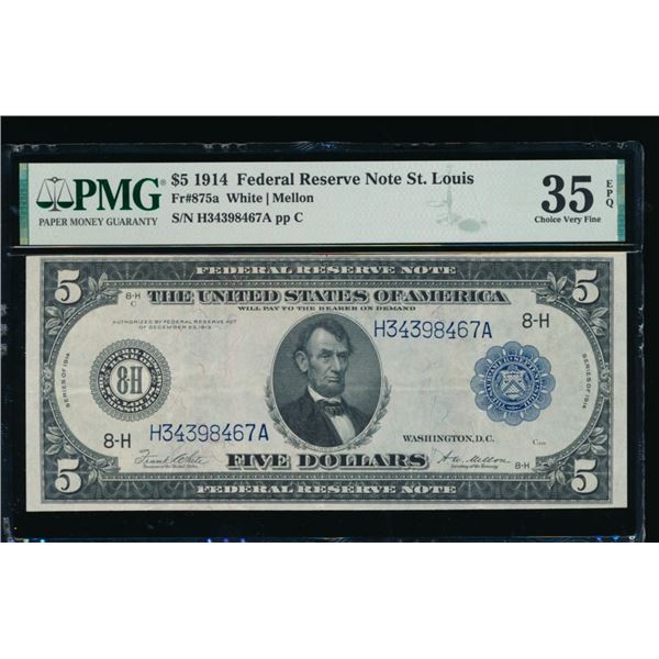 One 1914 $5 St Louis FRN PMG 35EPQ.