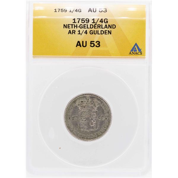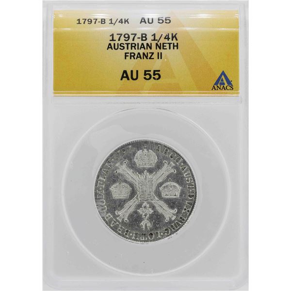 One 1797-B Austrian Netherlands 1/4 Kronenthaler ANACS AU55.