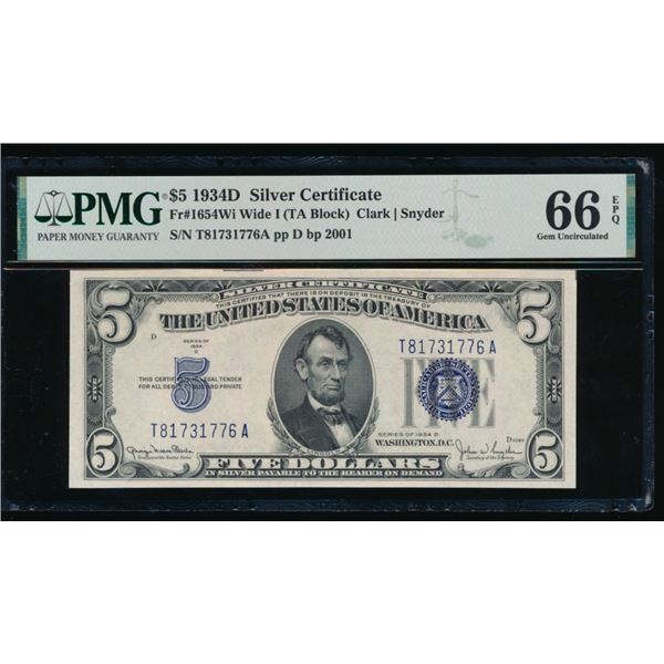 1923 $5 Lincoln Porthole Silver Cert PMG 63EPQ