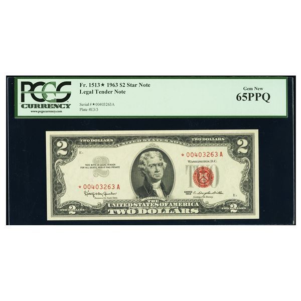 1963 $2 STAR Legal Tender Note PCGS 65PPQ