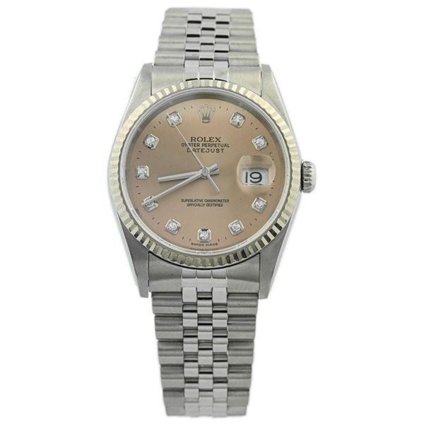 Model: Datejust 36. Reference #: 16234. Case: Stainless Steel. Case Size: 36mm. Bracelet: Jubilee Bracelet. Dial: Rose Dial w/ Diamond