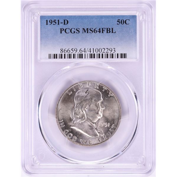 One 1951-D Franklin Half Dollar Coin PCGS MS64FBL.