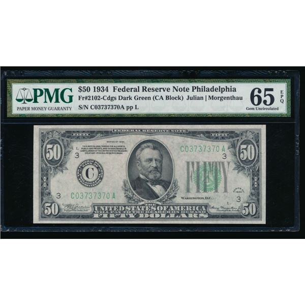 1934 $50 Philadelphia FRN PMG 65EPQ