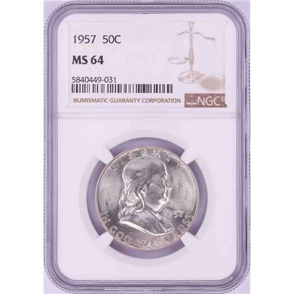 One 1957 Franklin Half Dollar Coin NGC MS64.